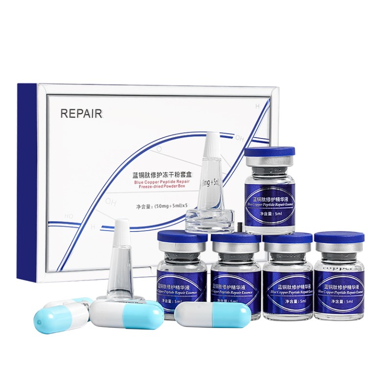 蓝铜肽的作用功效对皮肤的作用是补水保湿、滋润美白,因为能够有效的锁住30倍的水分,使肌肤持久水润、光泽细嫩,另外还可以通过抑制黑色素的产生过程达到美白的效果。其次可以修复断裂老化的弹力纤维网,能够使皮肤弹性恢复、延缓衰老,以及能够清除体内的自由基。而且蓝铜肽没有任何的副作用。