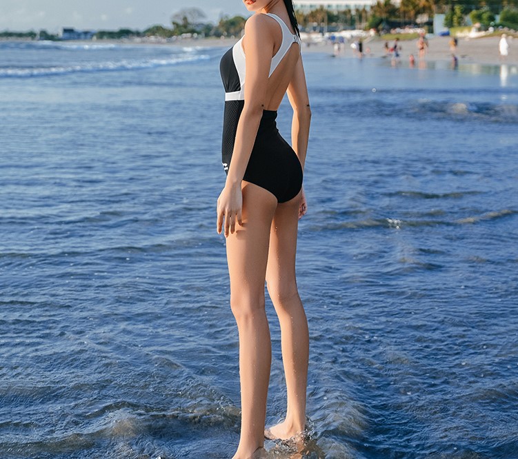 这也是最能够遮掩在意部分的连身款式,尤其有裙摆的洋装设计,最适合胸下垂的女孩。有部分款式,满身的时尚感充满甜美俏皮的气息,谁还说连体式泳衣“老土”呢,那是你不会选。