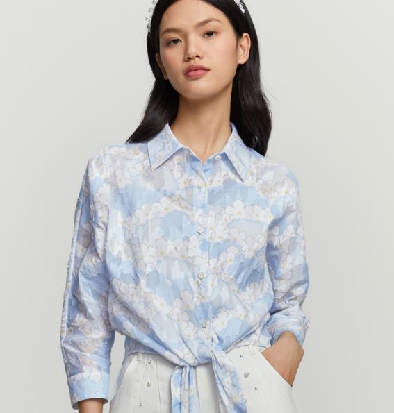下摆打结也是我们常用的穿法。最常见的就是用衬衫下摆在腰际处打个结,也是拉长身材比例的做法;另外,还可以只在衬衫的一边下摆打个结,也是非常独特有趣。