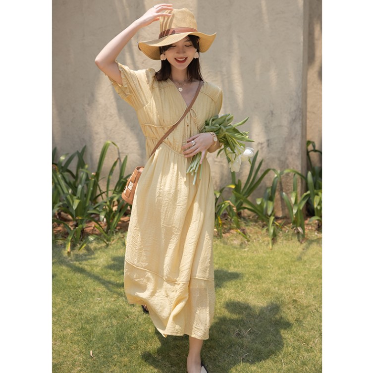 给裙子改收腰的方式很简单,第一种方法是在裙子上缝制一个松紧带。