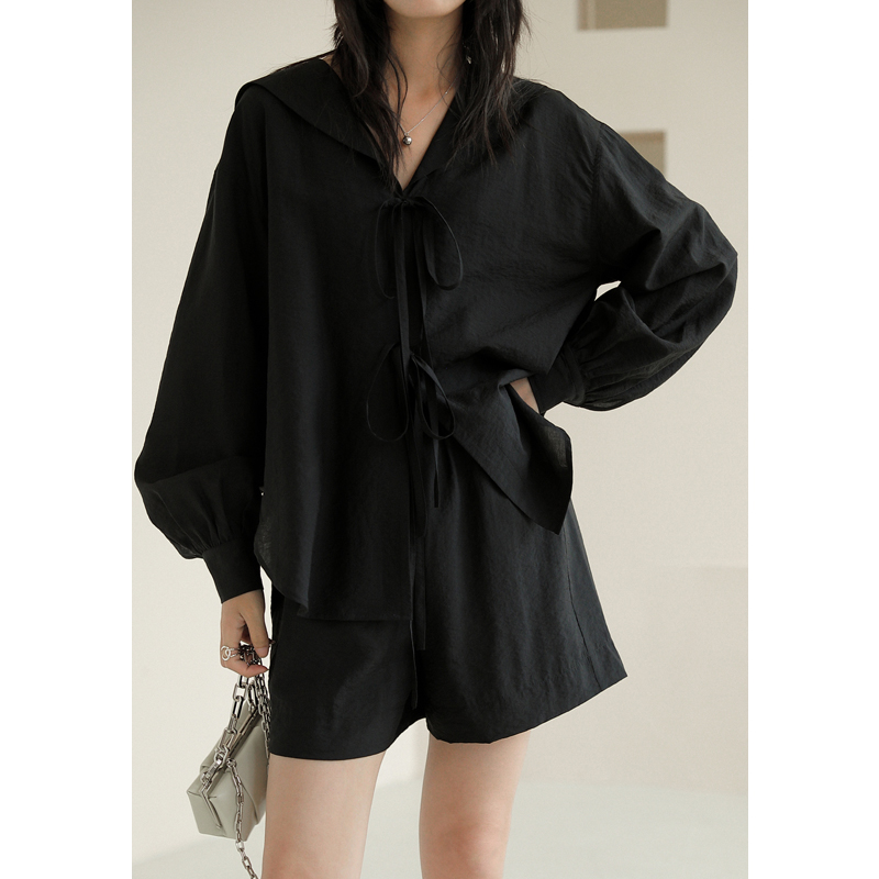 经典黑白配永远不会出错,早秋长袖衬衫搭配短裤是最经典的标准。率性洒脱的牛仔短裤为你打造大长腿,黑色衬衫却为你带来丝毫暖意。