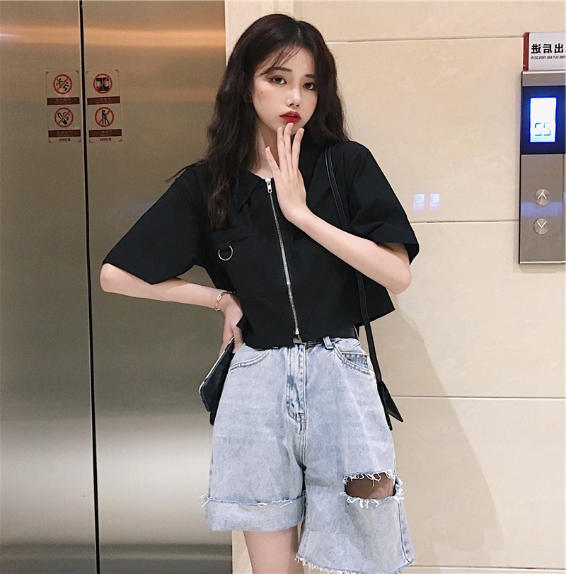 无论是牛仔短裤还是牛仔长裤,搭配黑色衬衫都是绝配。黑色衬衫就是个冷美人,牛仔裤是个休闲时尚的热力青年,二者搭配起来,活力四射又不失冷峻范儿,再搭配一款机车包,不能再潇洒喽。
