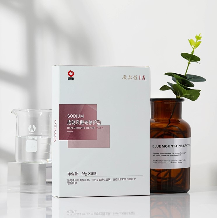 2.将面膜取出来,按照面部的轮廓,将面膜敷在脸上,使得面膜和肌肤紧密贴合,避免有气泡产生。