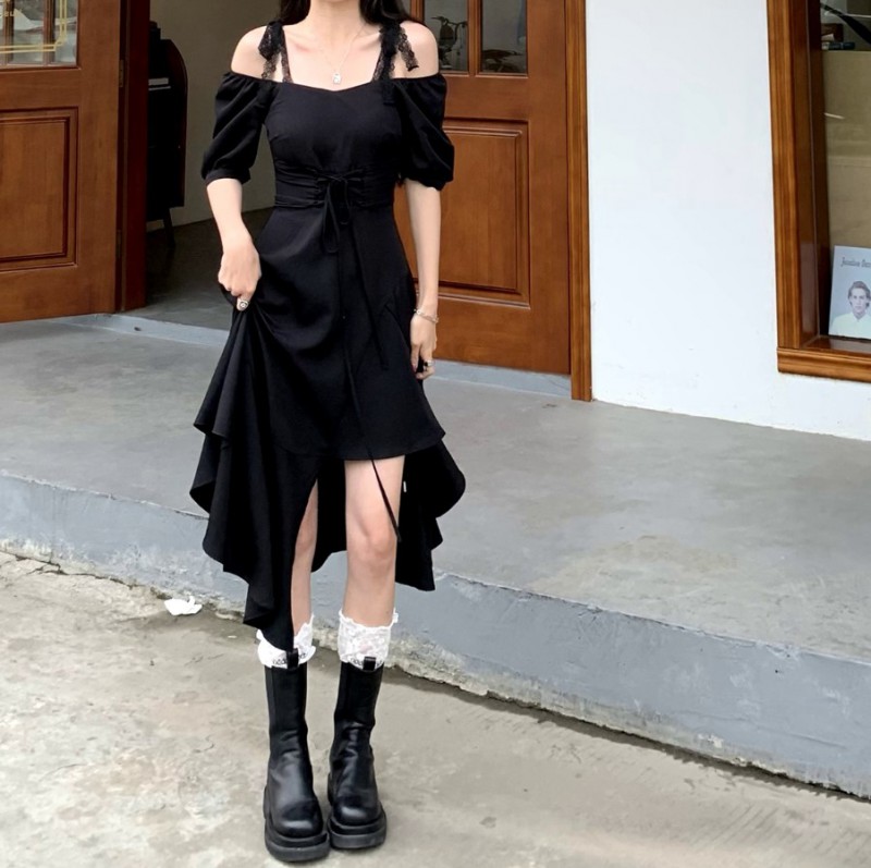 首先是偏正式感的连衣裙。这种裙子一般露肩,贴身,材质轻薄,要么端庄大气,要么清新甜美,可以用于一般或偏正式的聚会穿。但是要注意,这种偏正式的连衣裙一般都是贴身量制的,所以对于身材的要求比较高,微胖的姑娘一定要注意选择那些能够隐藏自己身材特点的款式,比如高腰的,露肩的等等。