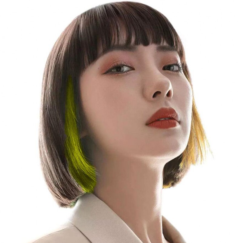 短直发换个发色立马时髦到没谁,而且两侧头发可以很好包裹住脸型,让脸蛋看起来更显小,加上空气八字刘海搭配,看起来更加清新甜美。