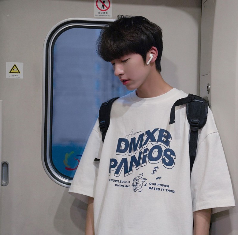 落肩的版型会比较特别一点,落肩的袖线普遍略低于人们的肩膀,不过整个效果看起来会更加宽松一些,这也是这近一年两年国内外经常出的T恤版型。