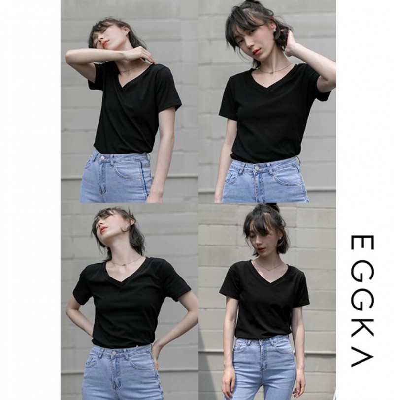 肩宽的女生可以选择V领的T恤,V领的款式特别能修饰肩部线条,而且白色又是很百搭的颜色,不管是款式,还是颜色都很适合肩宽妹子,妥妥的不显肩宽。