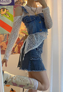 5、牛仔马甲搭配半身裙,帅气中带点优雅的味道,清新秀美。腰际配上腰带,勾勒腰身,提升搭配感,选择帆布鞋来搭配就很好看啦。