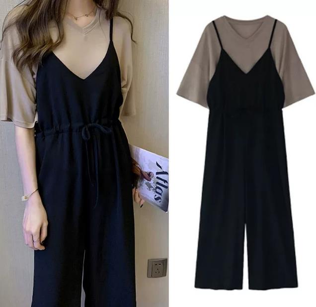 4、背带裙搭配纯色雪纺T恤甜美爱!