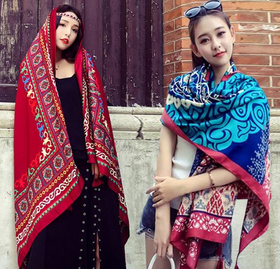 大丝巾最常见的围法,就是披肩式,这种方式非常常见而且百搭简单适合多种场合。