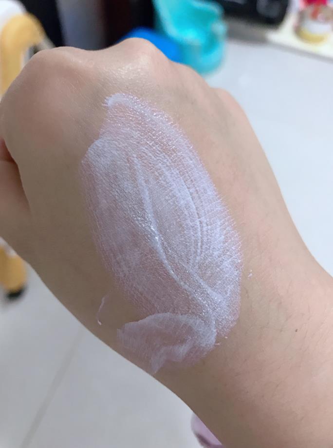 擦了一下,质地轻薄,不是特别油腻,很好涂开,没有味道,刚开始推开有一点点白,一会儿就吸收了。防晒效果很好,抹上凉凉的,夏天用非常干爽,宝宝属于敏感肌肤,这个非常温和。