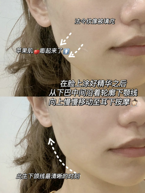 而且推下颌线和苹果肌的时候,感觉脸被提拉起来了有点说不出的神奇又舒服的感觉而且没想到才提拉了那么几下苹果肌竟然真的紧致了,下颌线也变得很清晰。这一提拉瞬间都觉得自己年轻了两岁,而且老姐说坚持用,法令纹也有淡化皮肤看起来也透亮了很多。