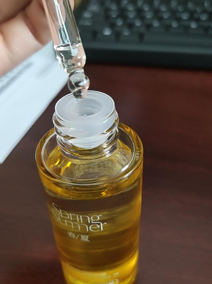先说质地,比较清透,流动性挺高,我最爱的是气味,特别清新好闻,不刺鼻,不油腻。对我这混油皮来说偏油了,但和我的其他精华液掺一起涂上,脸挺滋润的,只掺一两滴就好。