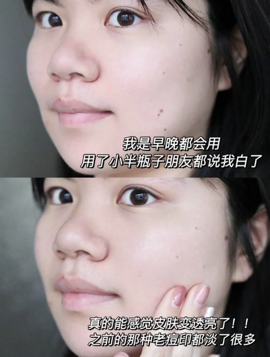 我是早晚都会用,用了小半瓶子好多朋友都说我白了,真的能感觉皮肤变透亮了,之前的那种有点黑黑的老痘印都淡了很多,前几天去试粉底液,发现提了个色号太惊喜了!
