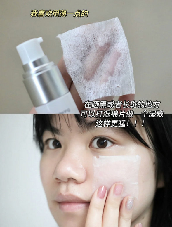 除了水乳后用外,在晒黑或者长斑的地方可以打湿棉片做一个湿敷这样更猛。敷面膜前也可以把这个作为导入精华保湿面膜也能用出美白效果~性价比巨高的国货宝藏!只要不停产就会一直买~推荐入手!