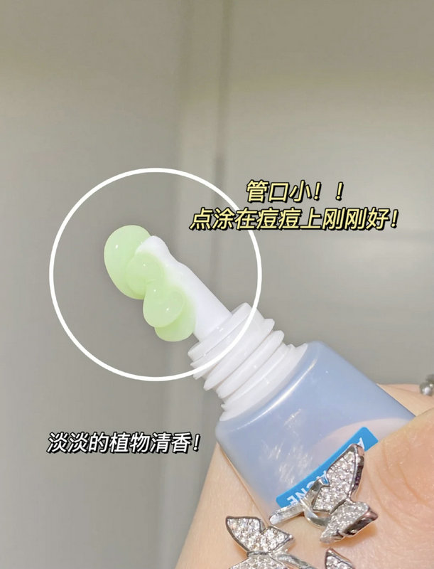 闻着有股淡淡的草药香,用的时候厚厚的挤一层涂在痘痘上,先让它自然吸收一会然后打圈按摩吸收哦,不抹开厚敷效果更好哦。