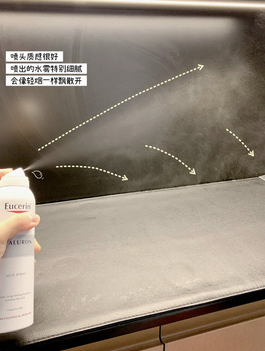 它喷出来的水雾真的炒鸡细腻,轻薄到几乎看不见水珠,像是一层雾气,完全不会有那种被强制洗脸的感觉,哈哈哈!!!凉凉的肤感用手轻轻拍两下就吸收了,每次肌肤很干或者有点敏感的时候我就会立刻用它,瞬间降温补水,好舒服啊~~真是一种享受,好喜欢。