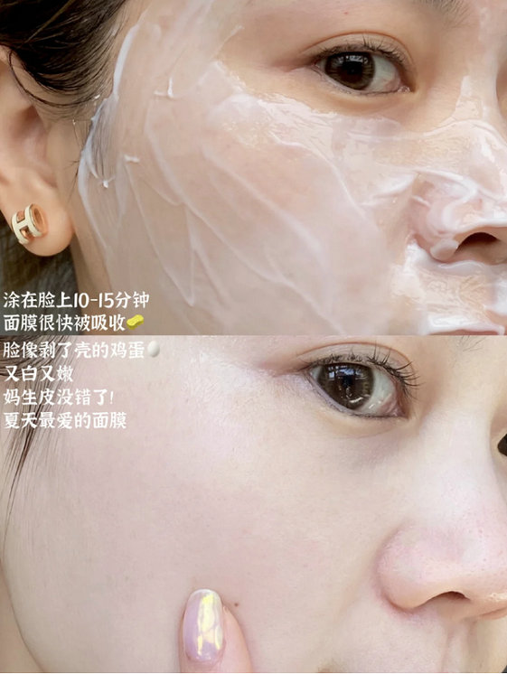 去黄提亮肤色选它就对了,酸奶质地上脸很舒服,睡前我会厚厚的敷一层10-15分钟就可以,面膜吸收完了,就是透明的状态,着急出门我就薄涂,救急清水洗过脸后,你自己都会觉得震惊!