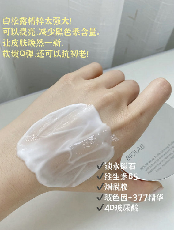 源自意大利阿尔巴地区的珍贵白松露完全野生,品质特别好需要10年的阳光雨露沐浴,得以长成。需要持证的猎人猎狗,到森林里寻觅挖掘后只能在空气中储存10天,富含8种维生素、18种氨基酸,实打实,足量功效添加,白松露臻萃可以优化细胞自噬过程,防衰,细嫩,透亮。
