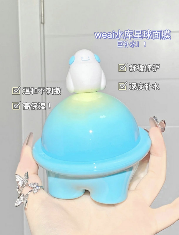 weai水库星球面膜,长得也太可爱了吧,好有创意哦,放在化妆桌,看着好治愈,心情都变好啦!质地就像果冻一样,水润润的,在脸上好推开,冰冰凉凉的轻薄透气,没有厚重感不闷痘哦~