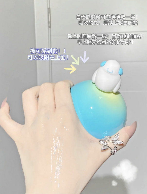 夏天到啦,我是混油皮出油好多啊~晚上一两点睡皮肤状态好差呀,上妆卡粉好严重啊,不忍直视!用贴片面膜感觉用完那一刻不错,早上起来皮肤还是有点干,出油多,水油不太平衡,就被闺蜜种草是一个小可爱,睡觉的时候都可以敷着不用水洗哦!