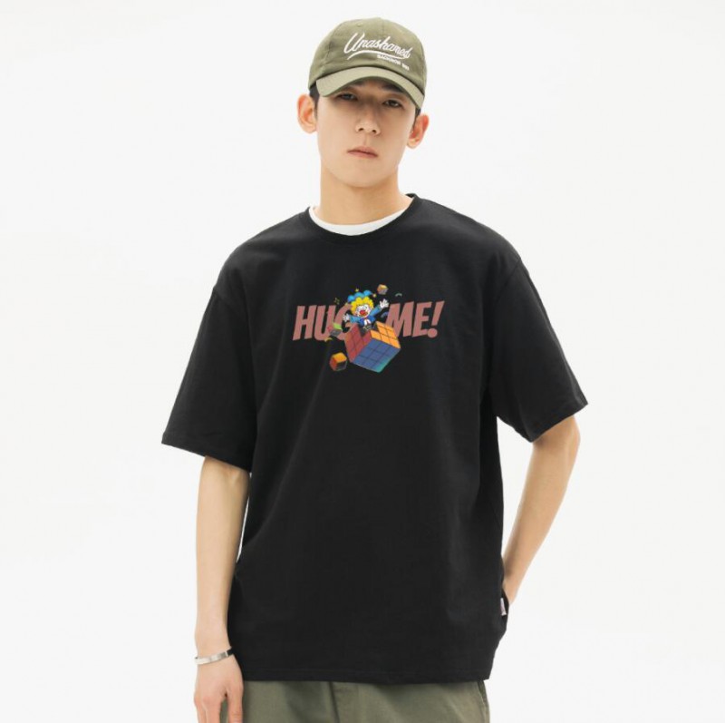 3、简单的白色长宽T恤,再配上花色时尚的印花和十分减龄的丸子头,凌乱发丝略显随性和酷帅之美。