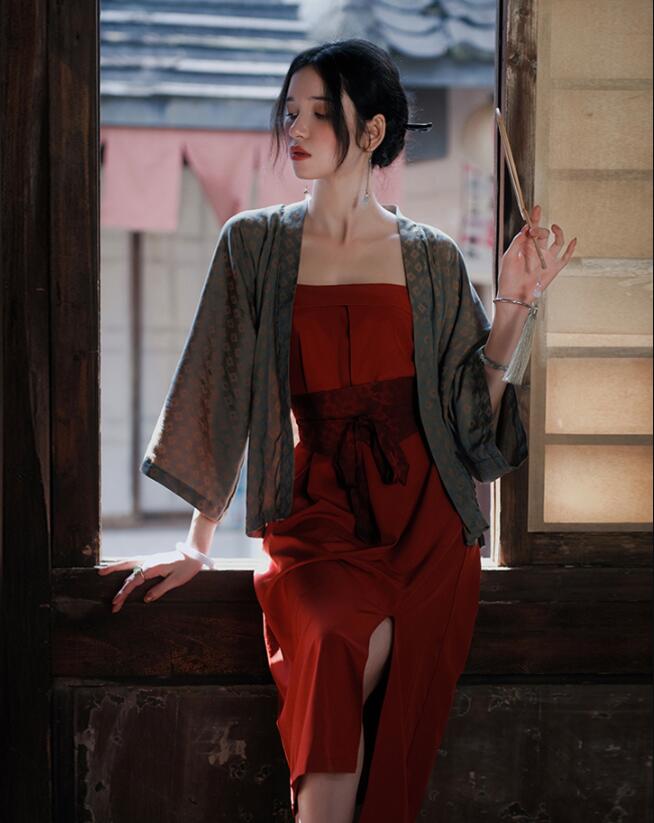 1、西装+碎花连衣裙