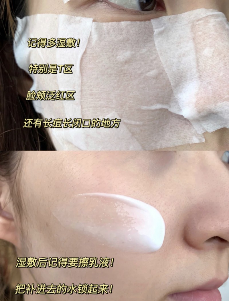我一周会敷个3次,每次3-5分钟,熬夜后都会敷针对湿热的天气,产生的闭囗和一些皮肤不适,敷完后皮肤喝饱水,还修复了一下皮肤敏感,如果皮肤变敏感了就拍这个水就好了,暂时不要再用面霜精华给面部增加负担。