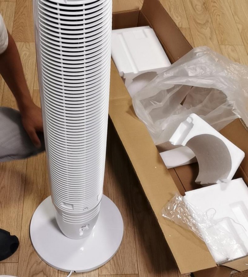 首先打开箱,这台格力塔扇颜值很高,非常好。 然后立刻按照图纸简易装试用,静音至极,风速强且均匀,非常好,质量挺好的,能够摇头,吹得风挺舒服的,也不占地方,声音不大,挺静音。