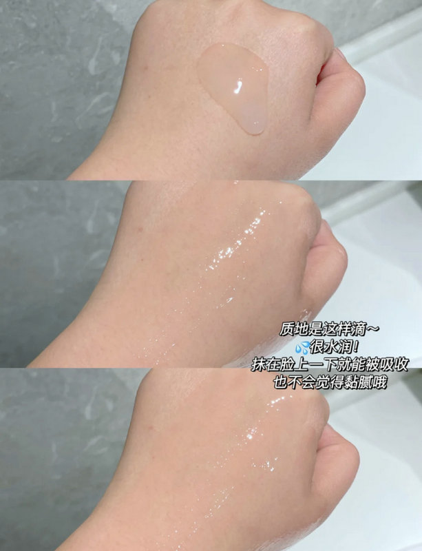 它的质地水水润润的,抹上去咻咻的就吸收了,也不会黏腻,或者闷闷糊糊的抹完大概也就一晚上。醒来后红脸就没了,nice!完了也不会觉得干~