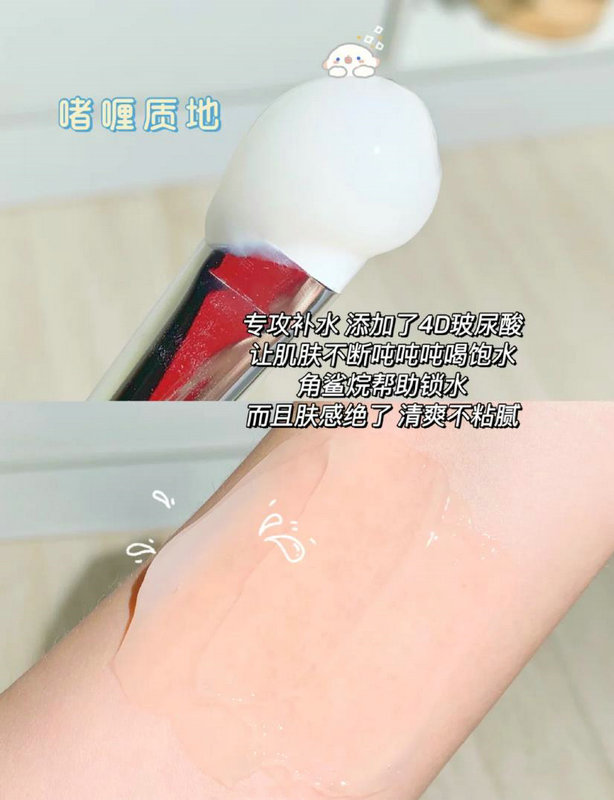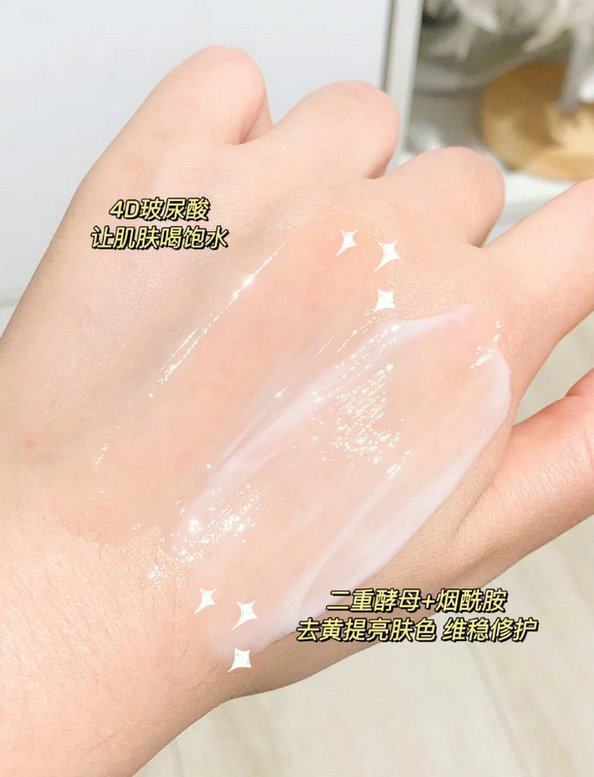 另一边是啫喱质地,一深层补水锁水4D玻尿酸+角鲨烷一听就知道补水不一般,上脸清爽不黏腻,敷完感觉脸上每个毛孔都喝饱了水,对混油肌是真的可!