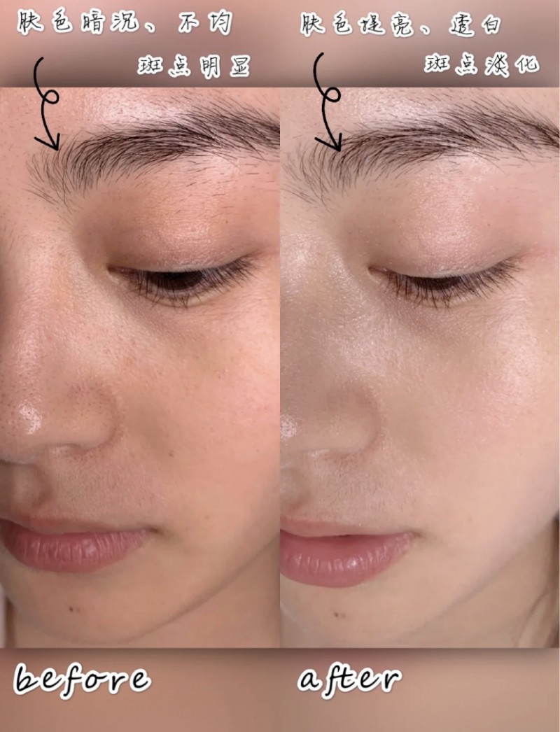 除了这个我还买一起买了焕采修颜精华液,也是去.黄.提.亮,本来以为两款一起用,会粘腻,但是完全不会哈哈哈,使用感还是挺可的,感觉可以让我快快变白白~