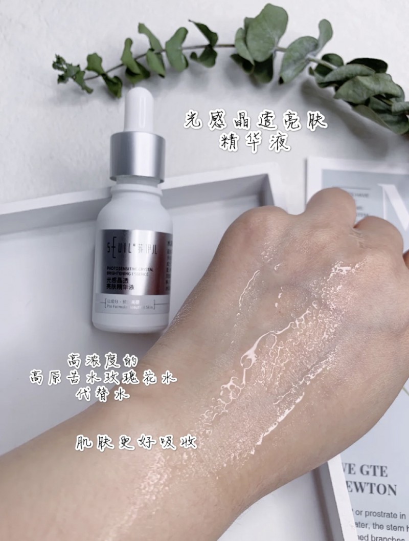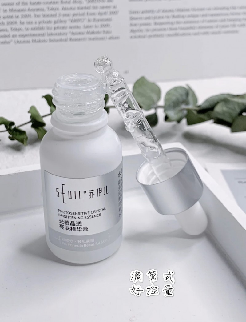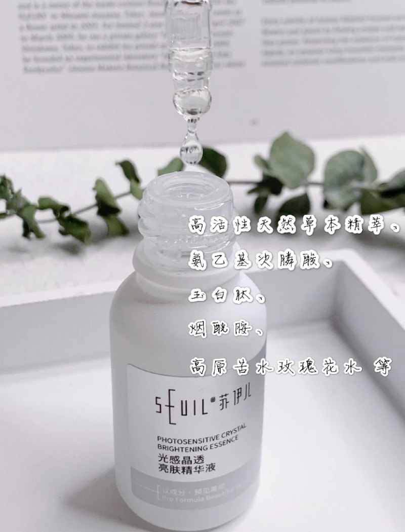 闺蜜最近给我分享一个很可的精华——苏伊儿光感晶透亮肤精华液。里面有各种植物当中的催.化.酶,抑制,黑色素可腻害哟~大热的烟酰胺也有。整体的抗.黑.美.白效果尊的不错。