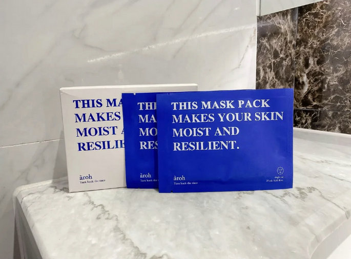 韩国女生都爱用的小众面膜,Aroh=“时光倒流”把拉丁语中意味着“时间”的hora倒写之后就是"阿罗"lns风设计,简约好看。