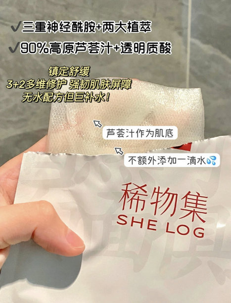 一开始觉得平平无奇,里面的精华确实好吸收。但是敷个2-3次,脸上的泛红就没了,补水也是好,往我脸上哐哐灌水,闹脾气的小红脸一下子就被镇住了,镇定舒缓问题肌!