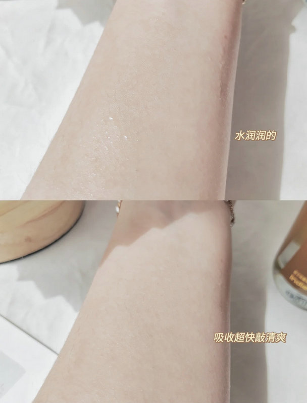 倒出来清水一样,涂抹脸上后却有一层薄薄的油脂,像涂了薄薄的乳液,感觉很滋润但又非常清爽,手心和脸上都没有油腻或干燥感,非常干净清薄湿润,没想到国货也能做出这么惊艳的产品!