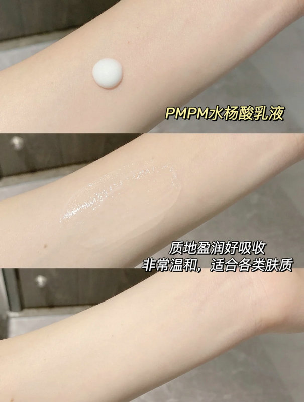 PMPM的水杨酸水乳是比较温和型的主打龙血树精粹+5%的缓释水杨酸,里面添加的龙血树精粹,可以很好的修护皮肤,缓释水杨酸也可以对皮肤的毛孔进行清洁,很温和的抚平了痘痘和闭囗。