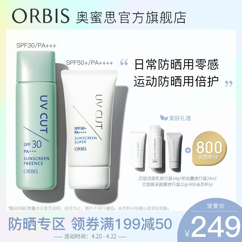 ORBIS/奥蜜思零感清爽防晒露物理防晒霜50ml+倍护防晒乳50g