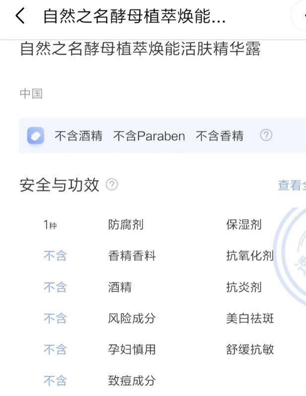 自然之名的神仙酵母水,这款水是我一个星期前做活动时领券买的,39元300ML超级平价,用起来一点也不心疼。不仅便宜,关键是成分超级安全八大不含,不含酒精,香精,没有致痘成分,连孕妇都可以用。自己在网上查了相关的成分表。
