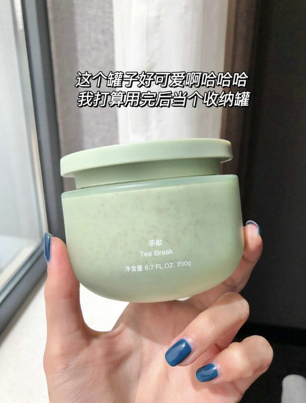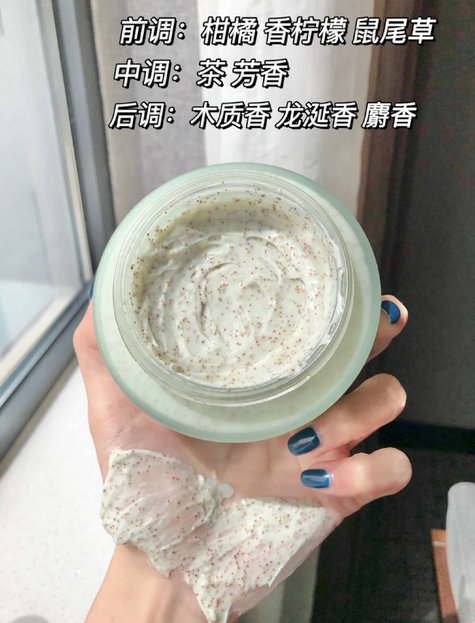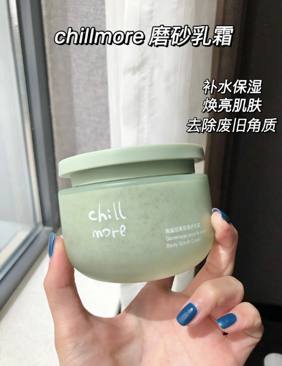 最近广东的天气时热时冷,有时候很热想要穿裙子,吊带,发现腿上的鸡皮好明显,小黑点,太丑了,于是就问闺蜜有什么好用的磨砂膏,就给我种草了chillmore角鲨烷香氛磨砂膏,看了包装瞬间吸粉,好好看的抹茶绿。