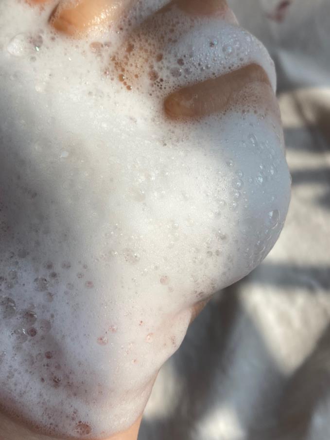 玉泽沐浴露的泡泡还蛮多的,沾点水就可以搓出很多泡沫,想要更绵密的泡泡,可以用沐浴球(它是不可以洗脸的),它泡沫虽然多,但还蛮好冲洗的,洗完之后身上很干净,不会假滑。