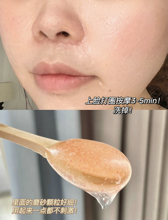 我一个星期大概用2-3次,这种面部磨砂膏我习惯涂的比较厚,之后打圈按摩3min左右就可以洗掉啦~洗完感觉脸蛋会呼吸。
