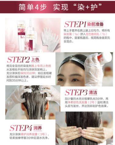 2.避免永久性染发剂。据统计近九成的染发剂含有硝基苯和苯胺等有毒化学物质,这些物质能够对人体产生危害。颜色越深的永久性染发剂对人体危害越大。