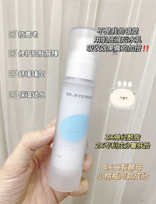 神秘博士肌底精华,我也是按头安利,就是用在水乳前的导入精华,能帮助皮肤打开吸收通道,后面水乳的吸收力,加倍有二裂酵母的加持,对皮肤的修护力也是没得说。