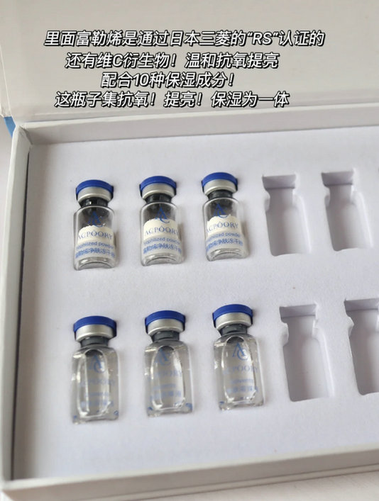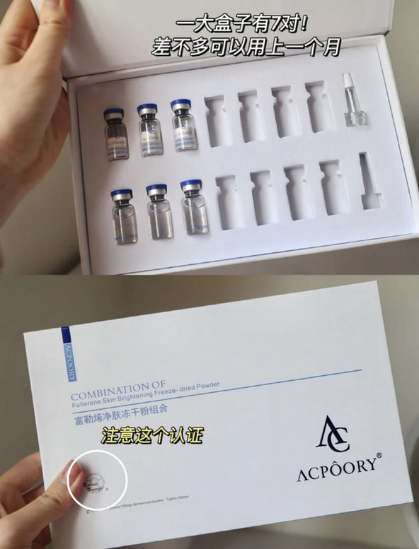 这个冻干粉里面的富勒烯是通过日本三菱的“R.S”认证的,要知道获得R.S认证才表明富勒烯添加量达到了起效浓度,所以一定要认准哦~