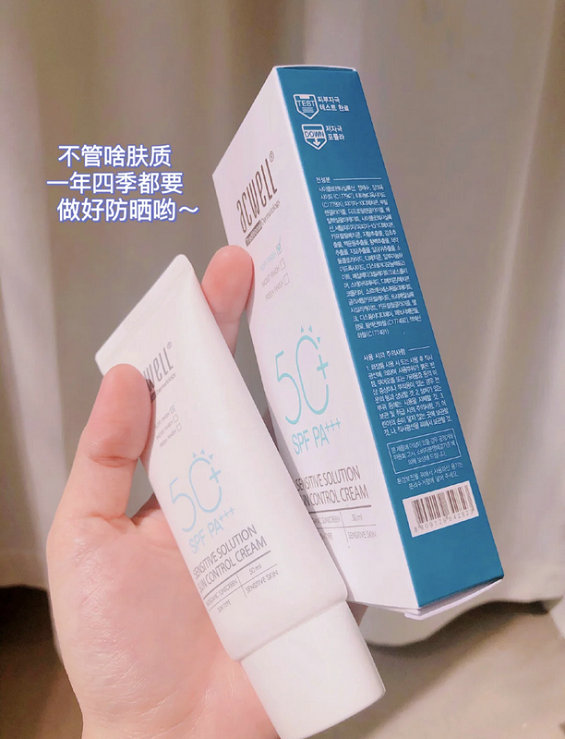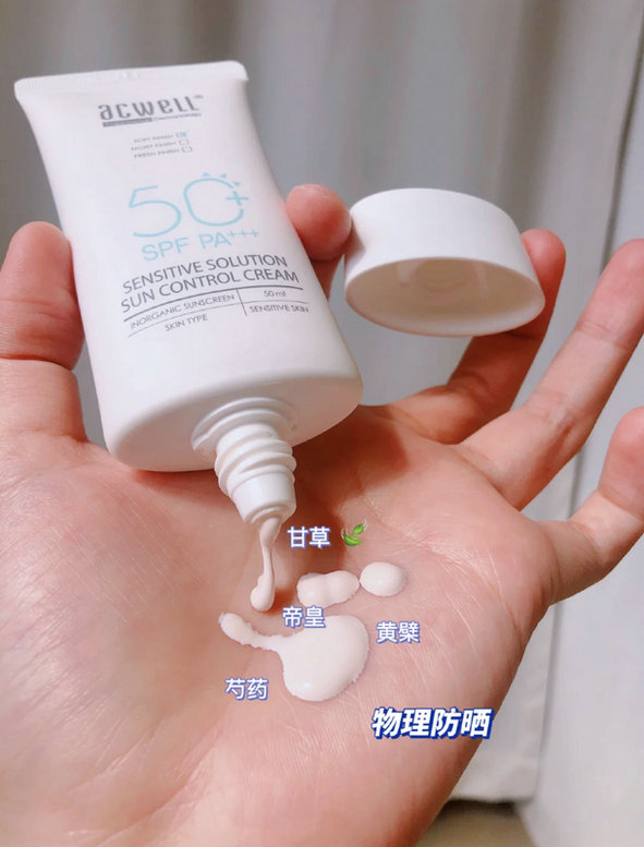 它是从甘草、帝皇、芍药、黄檗草本植物中提取的物理防晒,用起来温和不刺激,敏感肌也可以使用。专为敏感性皮肤设计的,低刺激温和防晒霜,敏感护理系列,艾珂薇隔离防晒霜。