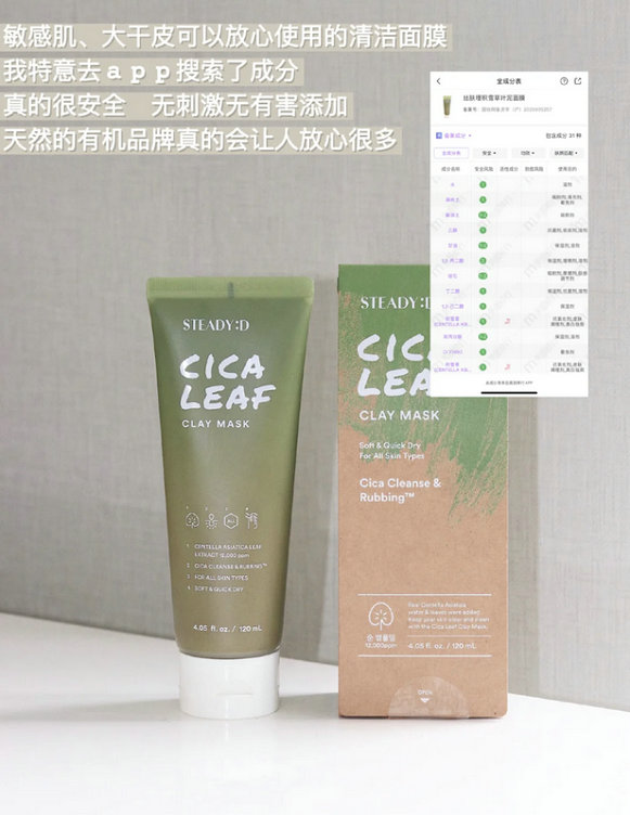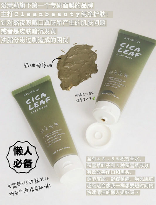 爱茉莉STEADY:D丝肤理积雪草叶泥面膜深层清洁滋润不紧绷温和舒爽