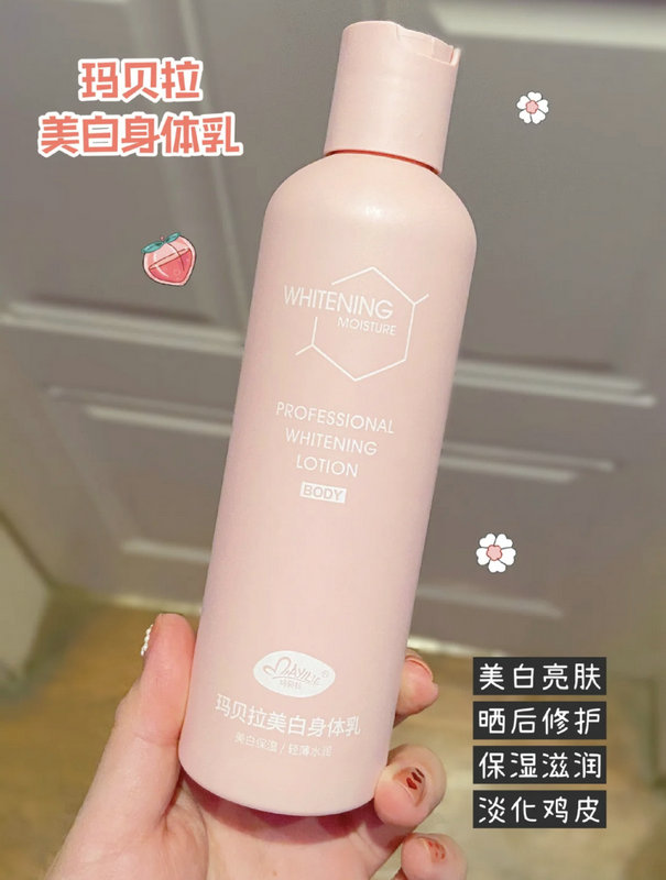 这款玛贝拉美白身体乳是看博主种草的,因为非常喜欢粉色的东西,而且她介绍的这款身体乳美白效果很好,香味也很持久,然后就入手了。