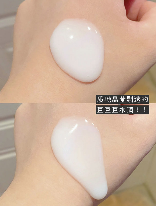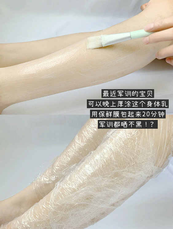 质地是那种轻薄又水润质的感觉,涂全身几下就吸收,一点不黏腻,洗完澡涂了可以接着穿衣服!!军训的时候想晒不黑就学我涂全身在裹上保鲜膜!!军训涂防晒前涂上一层!