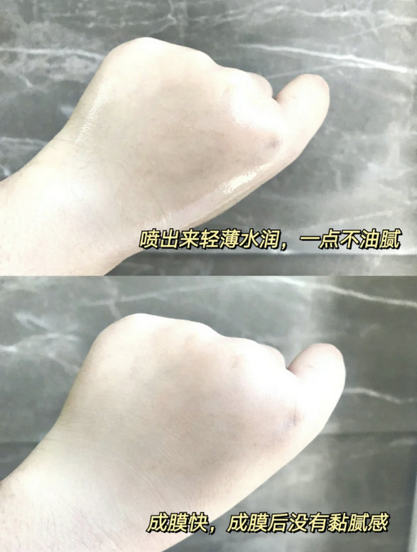 0.01mm细密喷雾,纳米级雾化,5秒成膜,喷雾很细腻,喷出来水雾也很大范围,使用起来非常方便,成分安全,敏感肌使用无压力。